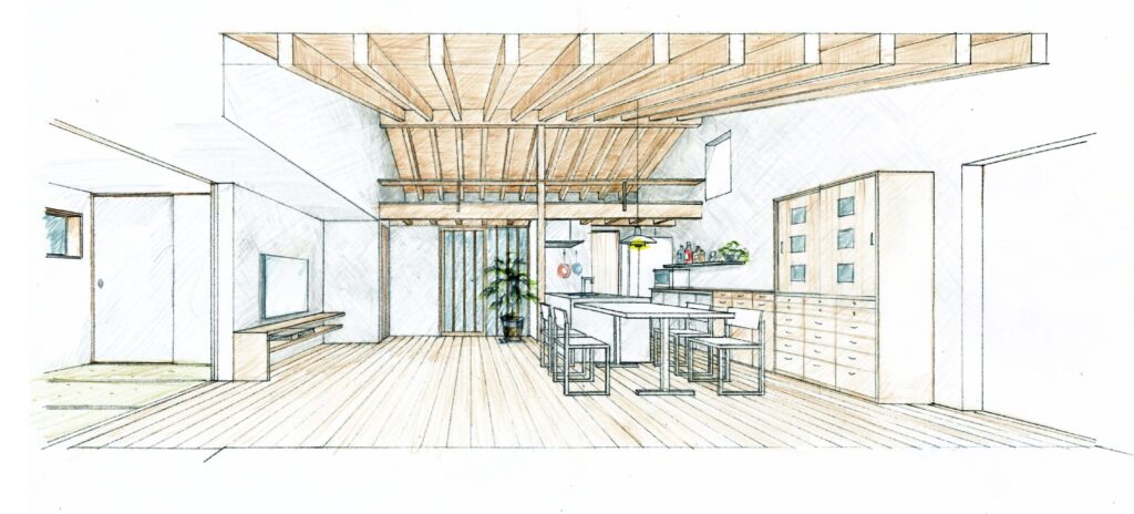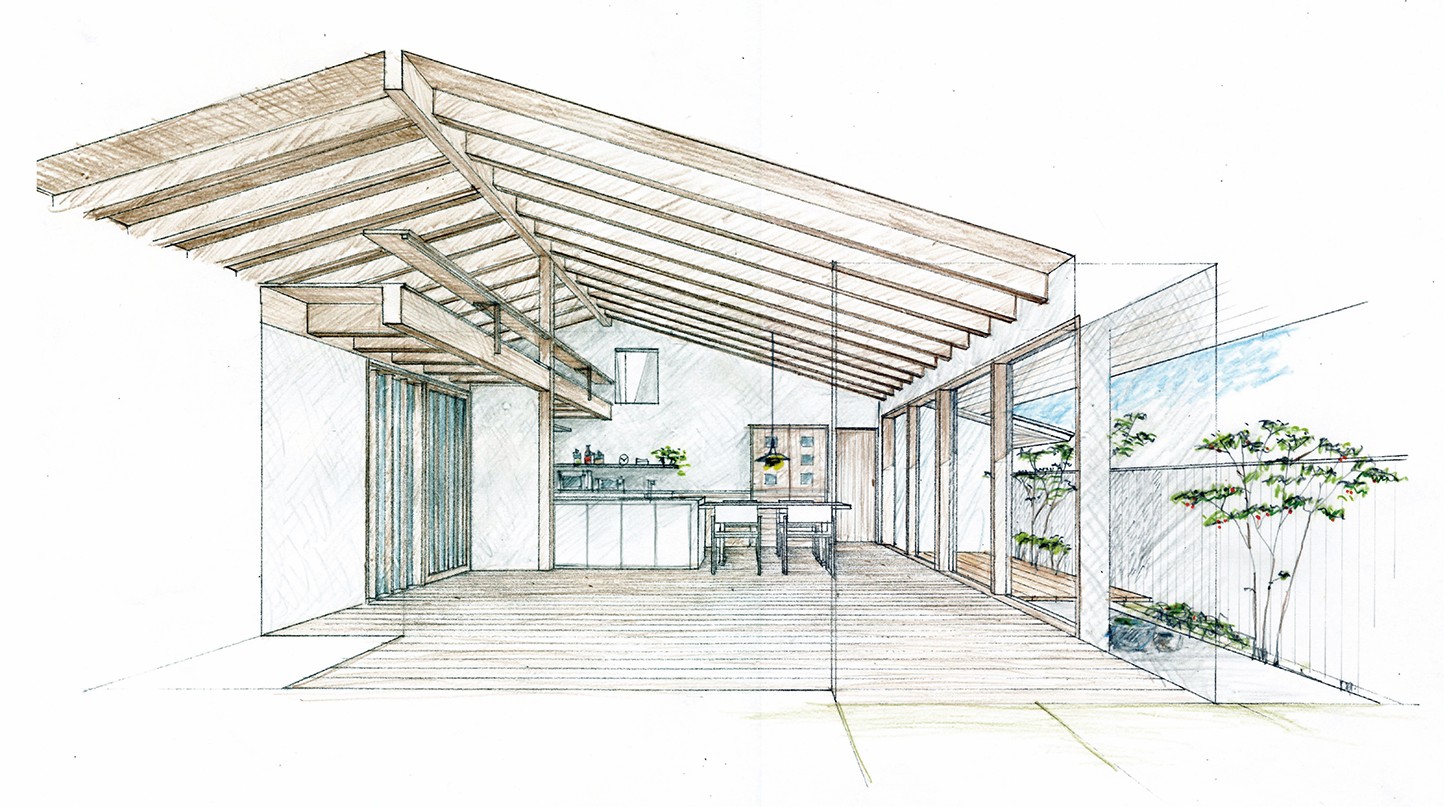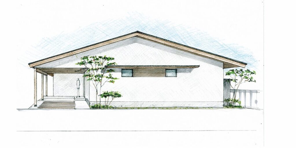 平屋の住まいの特徴は、大地に近いところで暮らしが完結し低重心の落ち着いた生活空間になること、屋根の形状をそのまま内部空間のかたちに反映させやすいこと、部屋と部屋の関係性が明快で家全体のまとまりと一体感が生まれやすいことなどがあり、シンプルで穏やかな日常の暮らしに向いていると思います。